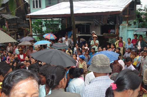 Refugees in Bogalay gathering to receive relief supplies.