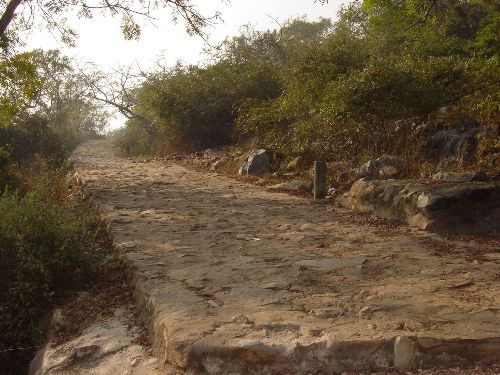 The path to the peak follows the road that King Bimbisara built for Buddha.