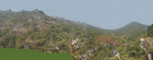 From the peak you can clearly see the new Japanese peace stupa on the left. Our guard told us that Tibetan pilgrims often walk the entire distance from the peace stupa to the peak on the right where there was an Ashokan stupa, and from there to Gijjhakuta where we were standing.