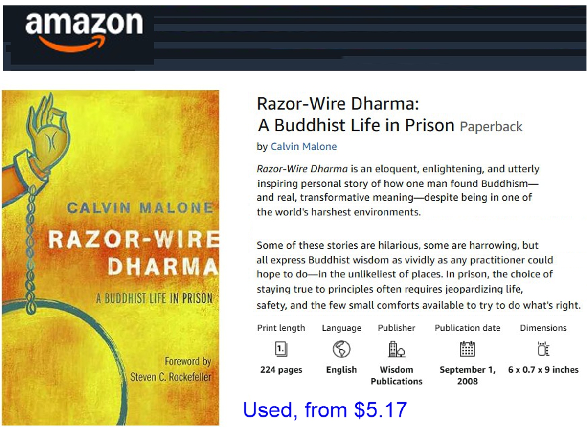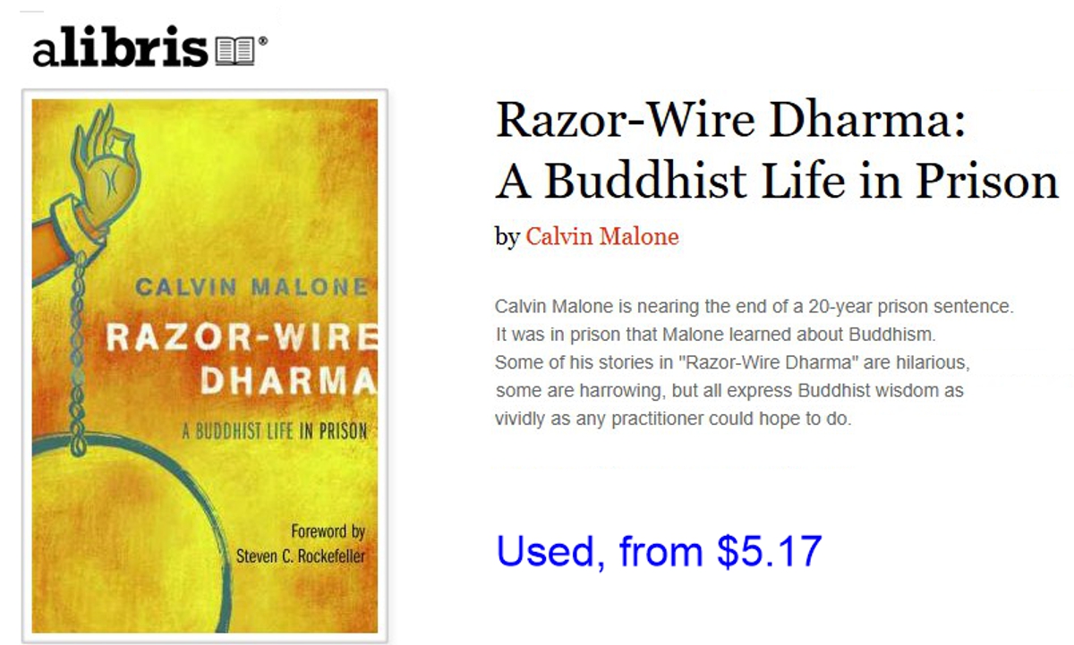 Reviewshttps://newbuddhist.com/discussion/2980/book-review-razor-wire-dharma https://fionnchu.blogspot.com/2011/03/calvin-malones-razor-wire-dharma-book.html https://otter.ai/u/8LhF80VRCQaF_U8JwtUElgjvLOo https://www.northwestdharma.org/news/08SeptOctIssue/razorwire.php |