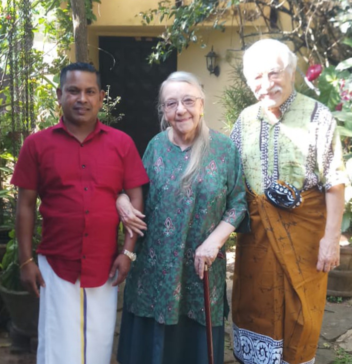 In the last report, we mentioned several European SERVAS visitors. Happily, the visits have continued. In February, we had two SERVAS guests from France, Odile and Stephanie. Odile, a SERVAS coordinator from Lyons, stayed only two nights, but Stephanie was with us for quite a while, meeting friends in Kandy and offering her services as psychologist and counselor. The same as others who have been bitten by the "Sri Lanka bug," Stephanie is considering returning to reside in Sri Lanka, and Kandy is the preferred location. We hope that she is able to make all the arrangements. It would be lovely to have her as part of our community. In June, Gill and her daughter, Zoe, from Bristol, England, stayed with us for several days. We reminisced quite a bit about our travel with SERVAS in 1979. We remember that, during a walk with the SERVAS family in Bristol, we looked across into Wales and saw a fox jumping through the tall grass. That was the only time Ken had ever seen a wild fox, and Visakha had not seen one since whe was a child. While Rolf, our SERVAS guest from Germany (mentioned in our previous report) was wtih us, the family which runs the local general store in Anniwatte, commonly called "The Tamil Shop," where we purchase most of our dry ration donations, visited us, bringing their daughter and her two children who are living in Australia.