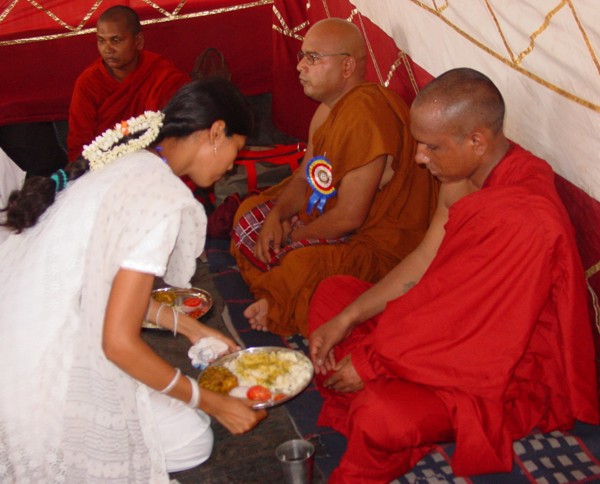 We left the conference with the distinct impression that many Indian Buddhists were not careful enough when they used the terms "bhikkhu" (monk), "bhikkhuni" (nun), and "samanera" and "samaneri" (male and female novices). One should not to refer to a man who observes only ten precepts as monk or bhikkhu! Apparently, some novices did try to pass as monks who had received higher ordination. Without asking directly, there was no way to know. On the other hand, all women in robes were called "nuns," and this was sometimes inappropriately translated as "bhikkhuni." Again, this confusion was exacerbated by the lack of proper training centers in India, with few members of the Sangha having any knowledge of vinaya. In other Theravada countries, it was generally understood that samaneras had to stay with their teachers until higher ordination, and that a bhikkhu should remain with his teacher for a further five years. This was not practical in India yet, but the need for proper bhikkhu training was obvious. There was also a clear need for a proper registration of Sangha, so that a person who put on robes could not immediately go about collecting alms and teaching on his own, pretending to have been ordained.