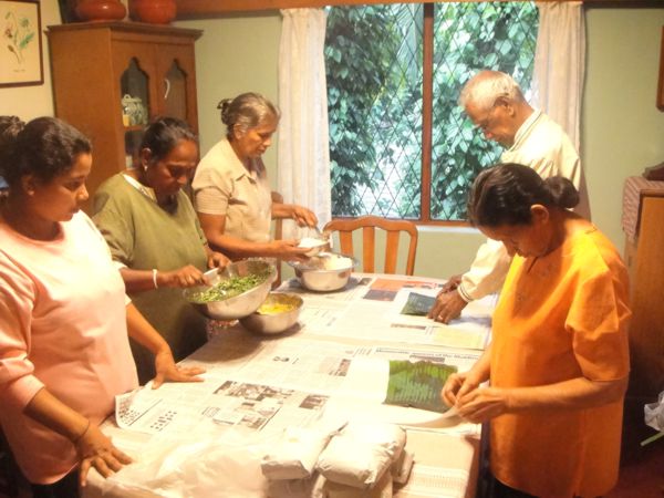 Lily did all the shopping this year, finding the best prices for rice, dahl and vegetables in the wholesale stores downtown. That was essential, given the alarming rise in food prices (because of the rains?). Every evening, the cooks cleaned the rice, chopped the vegetables, and retired to the library at about ten o'clock. By three AM, they were up and quietly cooking and huddling around the stoves for warmth. As soon as we finished breakfast, Charles and Manel set up their operation and began wrapping lunch packets on the dining table. This year, Lily tried to make the lunches more Burmese, with more oil in everything. Every other day, the lunch was garnished with fried peanuts, which were a real hit!