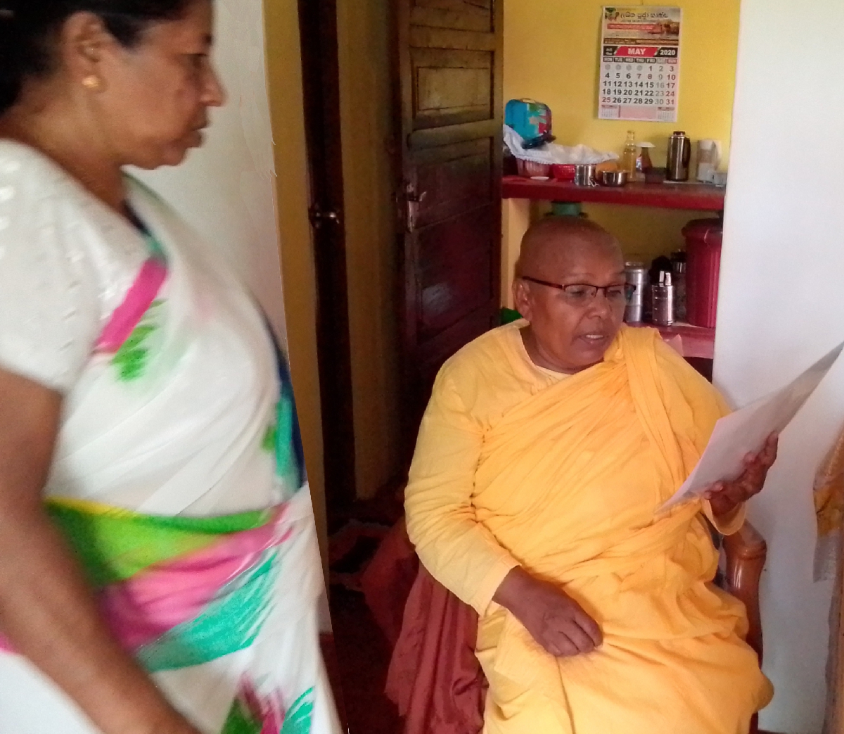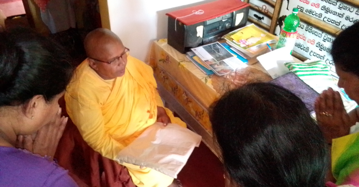 For several days, Lily, our friend and housekeeper, had been dreaming about her late mother. One day, she announced that, in memory of her mother, she wanted to offer a robe and slippers to Ven. Nanda, the bhikkhuni we have been supporting. Several days after the lockdown was lifted (again, temporarily), Lily, her daughter Surangi, and her grandson Shehan visited the hermitage with a meal they had prepared. On that occasion, we remembered our Thai friend Eid, Jason's wife, whose death anniversary it was. Jason is currently with his family in Canada, and it's not easy to make and share merit there. We offered milk, tea, sugar, chilli pieces, cleaning supplies, candles, incense, a bag of rice, and the last paper lantern we has left from those we bought years ago in Lumbini. All of this was presented on a beautiful copper tray, which was also a gift to the nun. Of course, we shared merit with all of our donors, as well we always do. We're so grateful to be able do this.