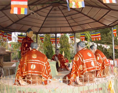 These images of Buddha teaching the Five Disciples are beside the vihara under a Bodhi tree.