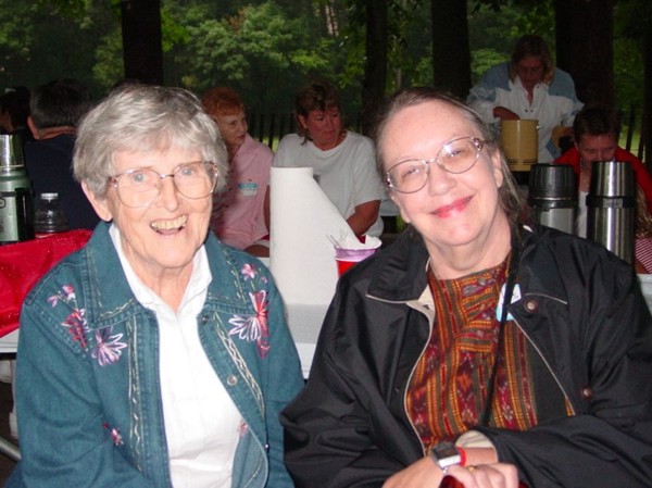 Pat Leimbach (right), definitely an honorary Kawasaki, attended both reunions. |